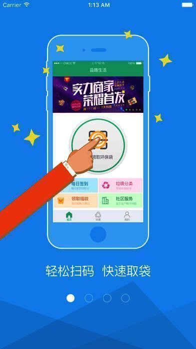 《益趣生活》是一项便民服务 O2O 项目,与平台联合线下智能设备应用,助力政府环保工作,让用户便捷获取免费垃圾袋及其他公益便民服务。