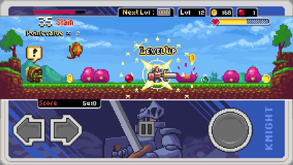 这是史上首个无休止的动作RPG游戏。《屠龙骑士》技巧挑战极高,在Google Play Store的无尽游戏里独具特色。别被它迷人的复古画风和动听的芯片音乐误导,游戏中死亡无处不在!