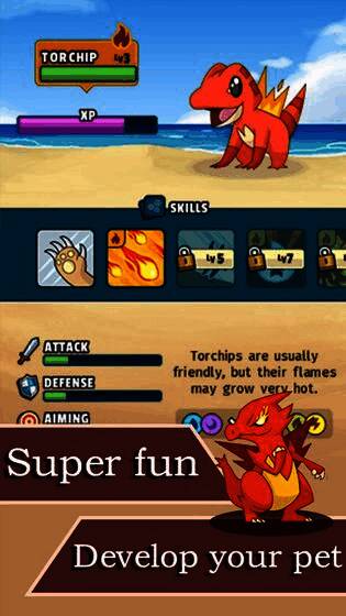 2. 众多动物精灵既好看又危险,玩家需操控小火龙击败它们。