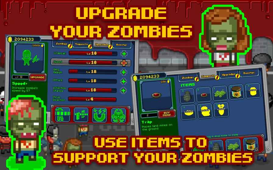 3、以时尚的像素风格和宏大的RPG地图为舞台,将所有人类转变为僵尸。