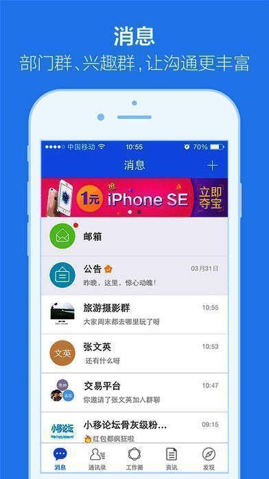 小移人家是一款面向大型企业员工的平台,提供即时消息、企业邮箱、通讯录、工作圈、公告、电话会议、鸡毛信等一体化交流沟通及办公协作服务,是企业宣传、交流、学习和办公的综合性工具。