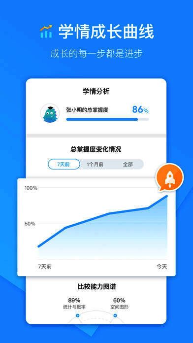 3、学情分析:绘制成长曲线,关注进步,分析知识点掌握差异,针对性补弱增强。