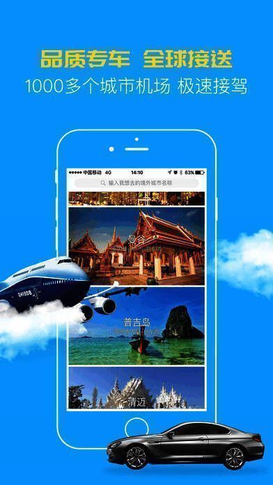 1、接送机:为全球1000多个城市的机场提供安心接送服务。