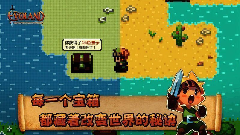 进化之地是一款独具创意、以游戏讲述历史的像素风格角色扮演游戏。游戏起始于复古的像素画面,既无色差也无声音。随后画面逐渐变为32位色,还能听到游戏音效。玩家拿到宝剑后,开始与怪物搏斗,在接任务、做任务的过程中,卷轴、迷宫、陷阱、卡牌、地下城、宝箱、女主、恶魔、飞船等游戏元素不断增加,主界面背景也随游戏进化最终变为3D。游戏带领玩家从FC时代跨越到如今的3D动作游戏,让玩家亲身体验20多年的RPG成长史。它参考了塞尔达传说和最终幻想等RPG的进化过程,让玩家纵观整个RPG游戏的进化史,或许能勾起玩家的些许感动。