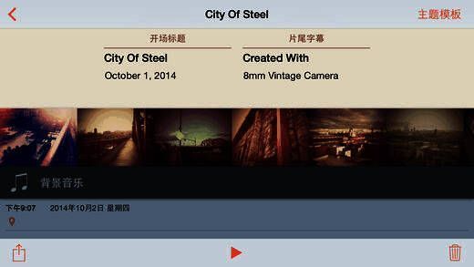 4、新功能:快速编辑,能轻松编辑8毫米录制的视频,输出专业水平的完整影片。提供5种复古风格的主题模板,包括极简主义、古典(免费),默片、倒计时和炫光(内购)。