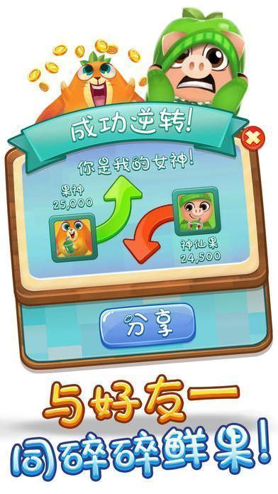 《碎碎曲奇》的创作者为大家带来全新三消游戏,充满各种水果挑战。在新游戏世界里,和奇异果、芒果等一起开启水果冒险之旅。跳进果汁车卡,探索数十个奇妙世界,和奇异果一起制作果汁满足顾客、打败BOSS猫。匹配翻转水果触发魔法道具,乐趣十足且零热量!