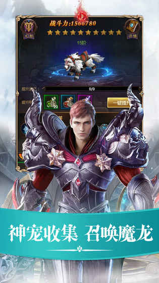 1、【经典魔幻,勇者之约】采用魔幻风格设计,有三大经典职业,唤醒你内心的记忆与感动,传承经典,热血重燃,和好友并肩战斗。2、【畅爽打击,斩邪灭仇】时装坐骑随职业不同而特色各异。不只有魔幻风,还有“冰雪奇缘”“暗夜王子”等风格,可凝练属性、幻化培养。超强打击感,操作流畅舒适,排位赛、世界boss、任务养成等系统多样,百玩不厌。