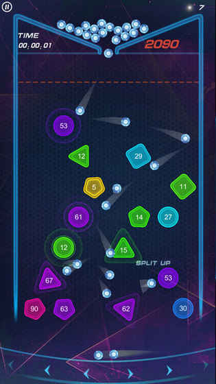 进入游戏后,玩家只需动动手指调整弹球发射方向,松手后上方待命的弹球便会依次发射出去,轻松击碎所有砖块。要注意的是,游戏中会随机出现各种小道具,充分利用它们能增加球的数量和威力,将疯狂的砖块逐个击退。快来行动,成为弹球游戏大师!