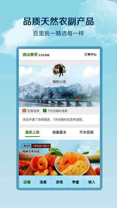 1. 深山果农:提供丰富的高品质天然农副产品供用户挑选。