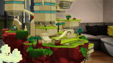 这款游戏画风精美,上手难度低。AR 技术让在家中构建梦幻小岛的幻想成为现实。通过不同角度和近大远小原理,能让分散的地形拼出相通道路。在视觉错觉方面有点像《纪念碑谷》,不过没有《纪念碑谷》把视觉错位运用得那么精妙。