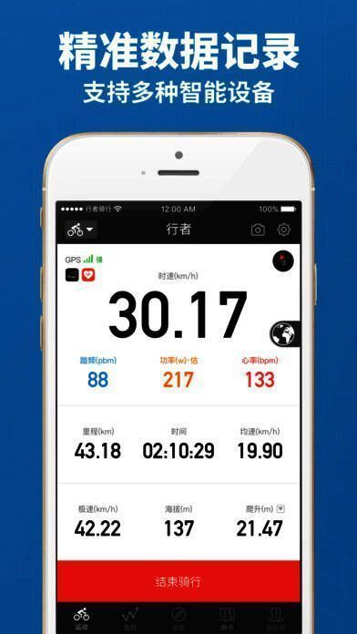 1. 支持连接蓝牙4.0及以上的速度踏频器和心率计,数据首页实时显示。