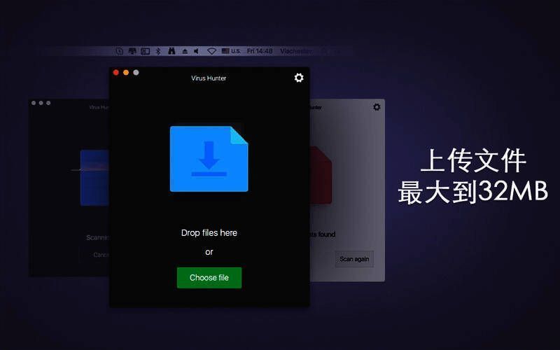 Mac OS X被公认为最安全的操作系统之一。若你对文件安全性存疑,可轻松借助病毒猎手应用查找受感染或危险的文件。你能上传最大32mb的文件到服务器,迅速获取检测结果。