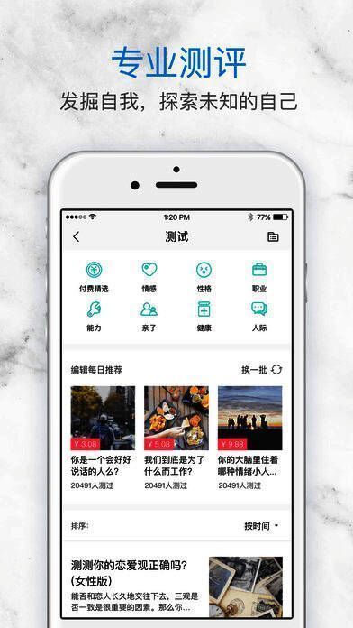 【心理测试】提供26个专业心理测试,助你迅速了解自身健康状况;