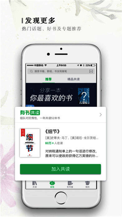 6、可与1000万共读书友交流同一本书的感悟。