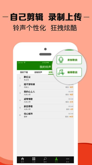 4、用户能够自行剪辑、录制并上传铃声,让手机彰显个性。
