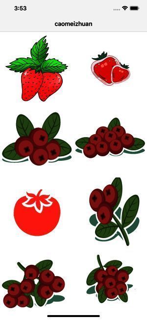 2、包含各种形状的草莓元素,用户能用草莓动图表达心情,还有草莓相关的表情包和素材。