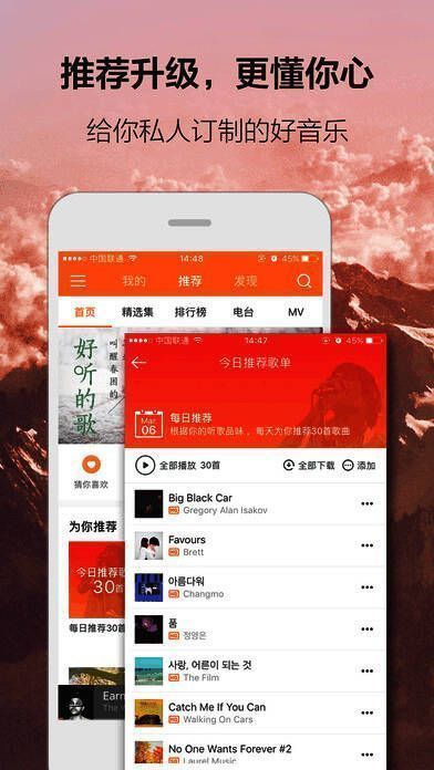 1. 高品质保证,450万首歌曲经频谱分析和人工监听审核。