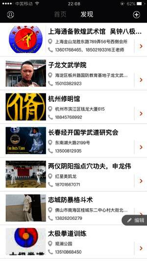 4、能在此寻找功夫培训机构,定位所在城市即可查找本地场馆,在线查看各个场馆详细信息,为选择场馆提供信息服务。