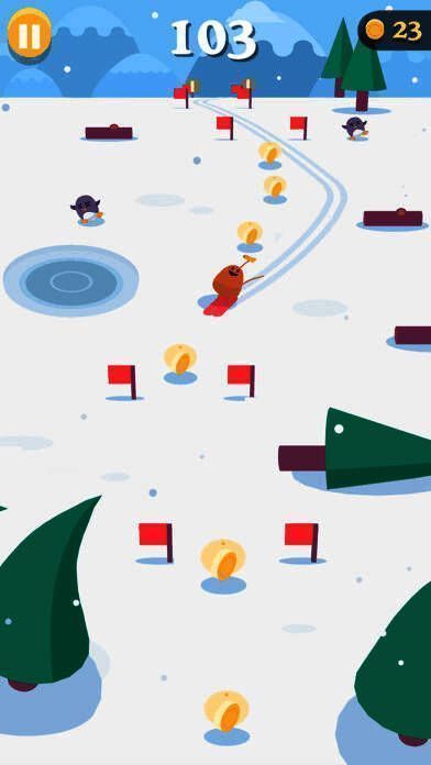 3、让豆子从陡峭山坡滚落,留意厚脸皮的企鹅。