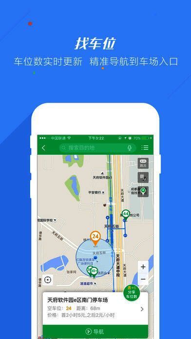 1、【找车位】车位数实时更新,精准导航至车场入口;