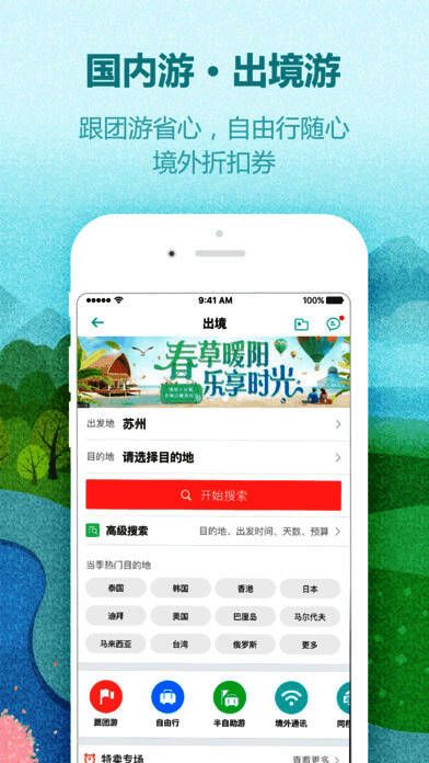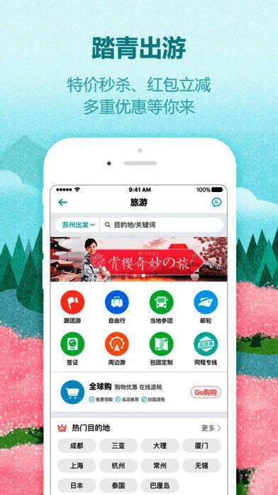 4. 周边游:有秒杀、返现、满赠、红包立减等玩法;跟团游同程专线一站直达;自由行随心所欲。