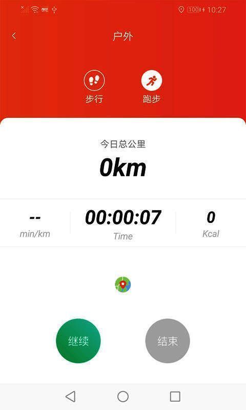 4、利用户外运动记录功能记录运动数据,选择运动模式并点击继续记录。