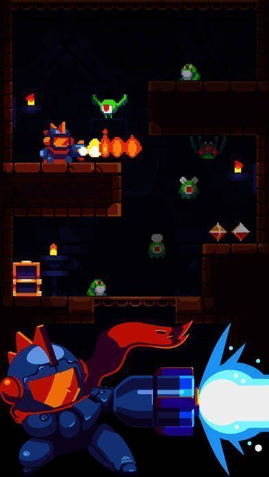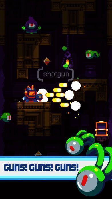 1. 暗黑像素风格的横版闯关冒险游戏;2. 与《坠落深井》画风玩法相似;3. 以快节奏射击战斗挑战;4. 玩家边移动边射杀怪物;5. 提供25多种不同难度关卡任务;6. 有9大特色武器装备供使用。