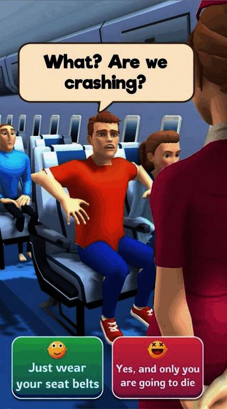 飞机可能会出现更多事故,你要扮演空姐去安抚不同乘客。