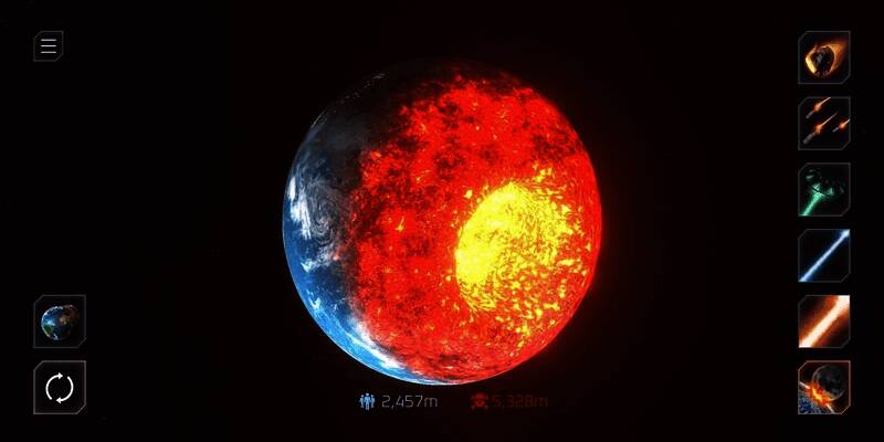 《行星毁灭模拟器》是一款科幻风休闲减压模拟手游。在游戏里,玩家能自由摧毁地球,使用不同武器破坏星球,破坏程度越大得分越高,过程十分减压,越玩越痛快。