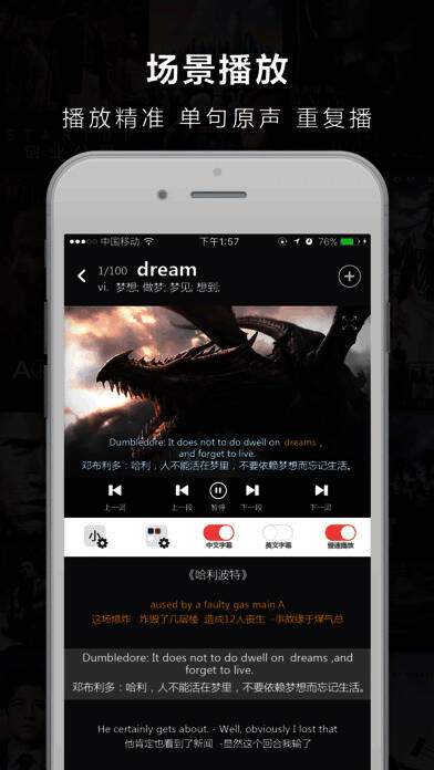 人人词典由人人字幕组与 FLVCD 合作打造,创新性地将字幕组十年积累的原创双语字幕和词典工具相结合。用户只需查询任意单词,就能得知该词在哪些电影、美剧台词中出现过,告别枯燥、千篇一律的例句。通过图文并茂的展示和电影原声,让单词记忆更加深刻。