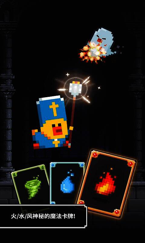 1、通过组合火、水、风卡牌魔法来击退幽灵。