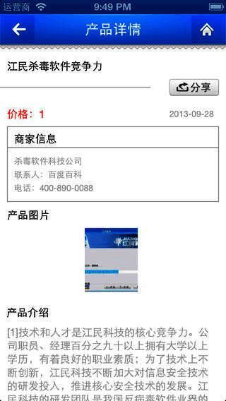 杀毒软件手机平台是国内领先的移动互联网手机应用。它为你提供精选的行业产品及价格,还有最新的新闻资讯与供应商信息。同时支持在线交友,让你和五湖四海的同行生意伙伴紧密相连。登录客户端就能及时浏览行业信息,让生意变得快捷又便利。该平台为行业企业搭建了全新、快捷、稳定的沟通桥梁,还能助力企业在移动互联网领域树立形象、拓展经营渠道、扩大对外交流以及开展电子商务合作。热忱欢迎广大商界人士和各界朋友共同发展。