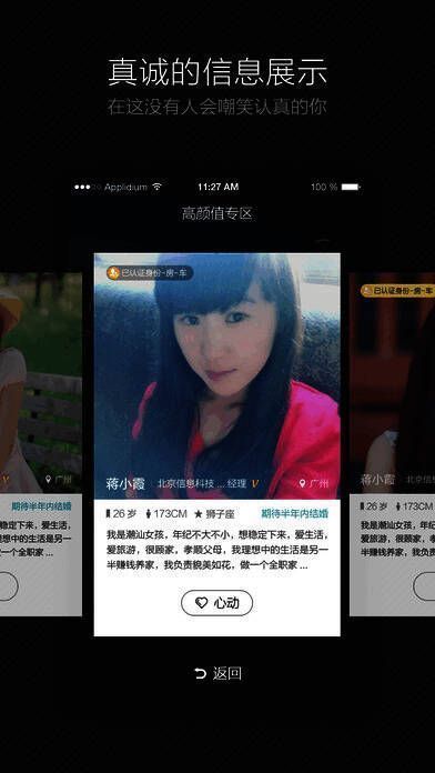 1、作为真实安全的相亲交友平台,拥有多项用户实名认证体系,为用户提供最安全的婚恋交友服务,助力中国1.6亿单身男女摆脱婚恋困境,找到心中理想的终身伴侣。