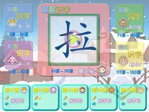 《趣趣识字第三册》是一款专门为3岁以上儿童设计的识字学习软件。该系列产品一共有五册,总共包含800个汉字。软件具备学习、测试、复习三大主要功能,先通过笔顺、拼音、手写的方式教导孩子写字,接着通过测试检验孩子是否掌握,最后进行复习,确保孩子牢记所学内容。
