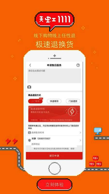 4. 极速退货:在实体门店购物后,线上就能退货,顺丰 2 小时上门取件,金卡、铂金卡会员在限额内可享受极速退款服务,退货发出后退款立即到账。