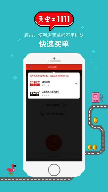 1. 手机快速买单:逛超市时使用天虹 APP 边逛边扫码,一键核验,告别排队,体验超酷炫的买单方式。