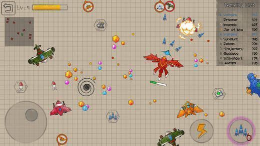 游戏开场,你会和其他飞机一同出现在有限空间内。快速操控飞机,收集盾牌、导弹、生命等道具,让自己变得更强。同时要躲避攻击者,射杀敌机以获取大量分数和金币。游戏操作简单,却充满趣味性与竞技性。