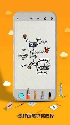 3、【笔触和色彩选择】有钢笔、铅笔、马克笔、毛笔四种笔触,搭配调色盘,让书写更具可能性。