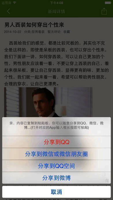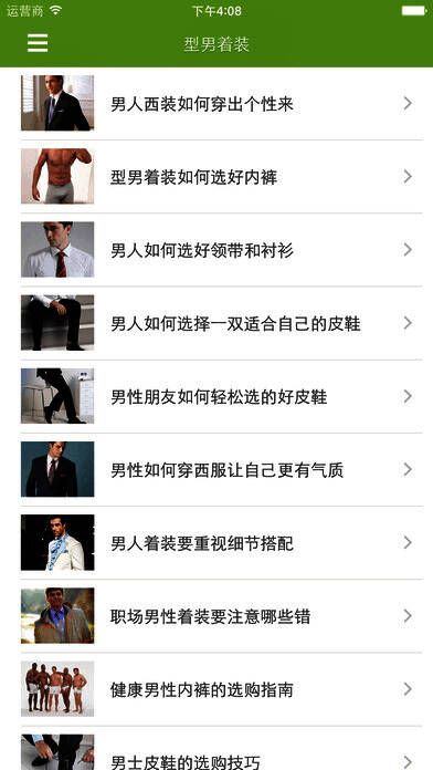 - 型男着装:职场男性注重事业,得体的穿着能增添气质,为事业加分,此部分可帮助男性学习穿衣搭配技巧。