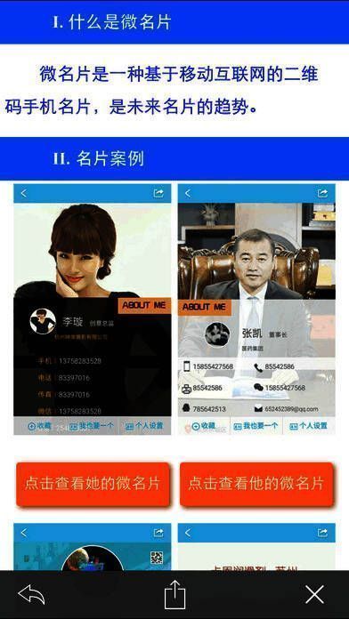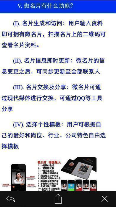 微名片是免费的电子名片,如同网络通行证,为用户提供手机上的名片制作与设计一站式服务,堪称网络时代的名片全能王。在网商时代,它能助力网络身份识别,对生意大有帮助。它是可移动的名片,集多媒体功能于一身,是微商和网络人士必备的名片之一,宛如名片中的极品、“绅士”,更是现代政要和企业老板身份的象征,也是今后企事业单位必备的宣传品。