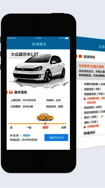 1、148项检测报告:“师傅看车”平台会即时发送详细的评估报告,涵盖车辆外观、底盘、启动、驾驶舱以及路试等148多项检测内容。