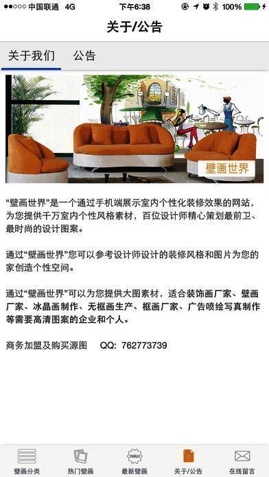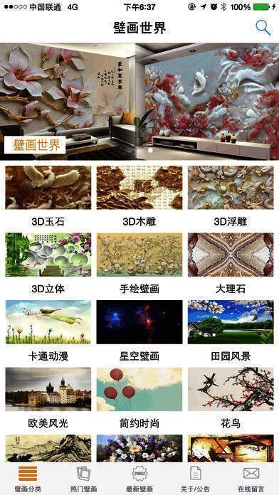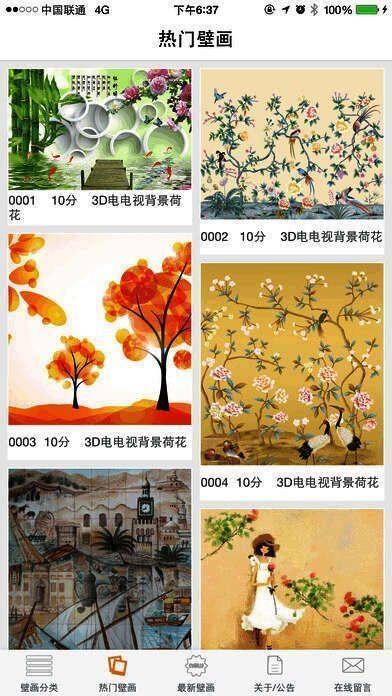 《壁画世界》是一款用于展示个性化室内装修的应用程序。它汇聚了百位设计师精心打造的最前沿、最时尚的设计图案,拥有海量高清图案供用户选择,门类丰富的热门壁画能满足您的收藏需求,多样风格的设计素材可让您的家别具一格。感兴趣的朋友不妨赶紧下载体验!