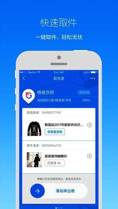 5、自提柜更多功能:能在自提柜一键取件和直接寄件。
