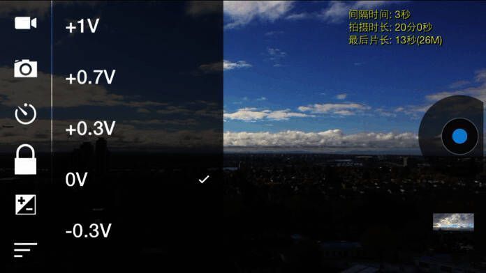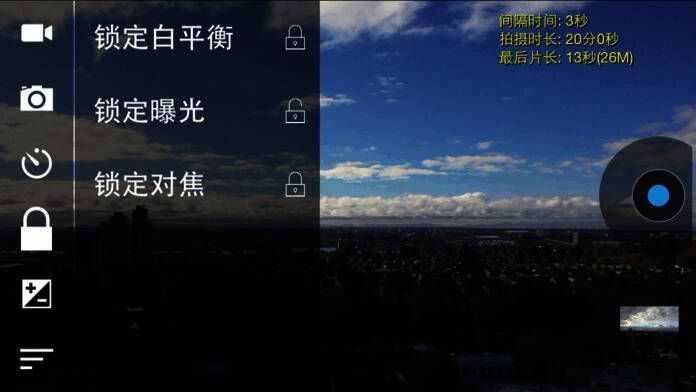 对于日出日落这种光线变化大的场景,程序支持锁定白平衡、曝光和对焦等设置。