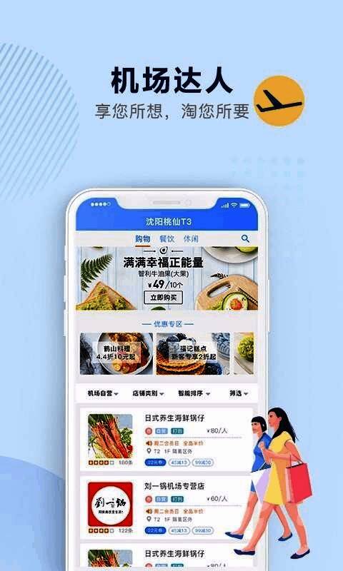 4、可查询机场餐饮、购物、休闲商品等多项服务。