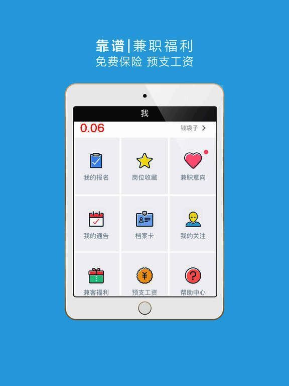 2、靠谱兼职特色:支持预支工资,还能领取保险;