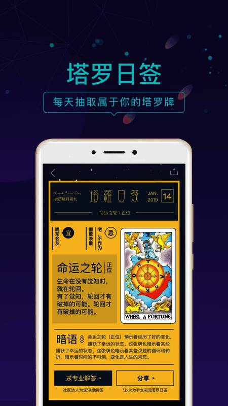 2. 阅读牌上内容,可选择分享或求专业解答。