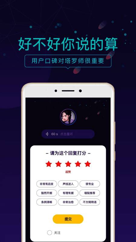 5. 快速点击星级与评论标签,或重复收听回复后提交评价。