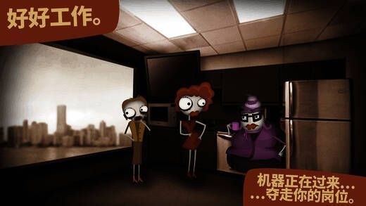 游戏大致玩法是,运用拖放命令来指挥人类办公人员解决老板布置的问题。每解开一个难题,你就能晋升到公司大楼的下一层,接着解决新的问题。每层楼代表一年的时光。