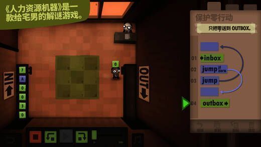 《人力资源机器》是一款面向广大玩家的解谜游戏。在每一层里,上司会给你分配一项任务,你要通过为小职员编程来实现任务自动化。若你成功完成,就能晋升到这幢宏大办公楼的下一层,开启新一年的工作啦。恭喜你迈向新高度!